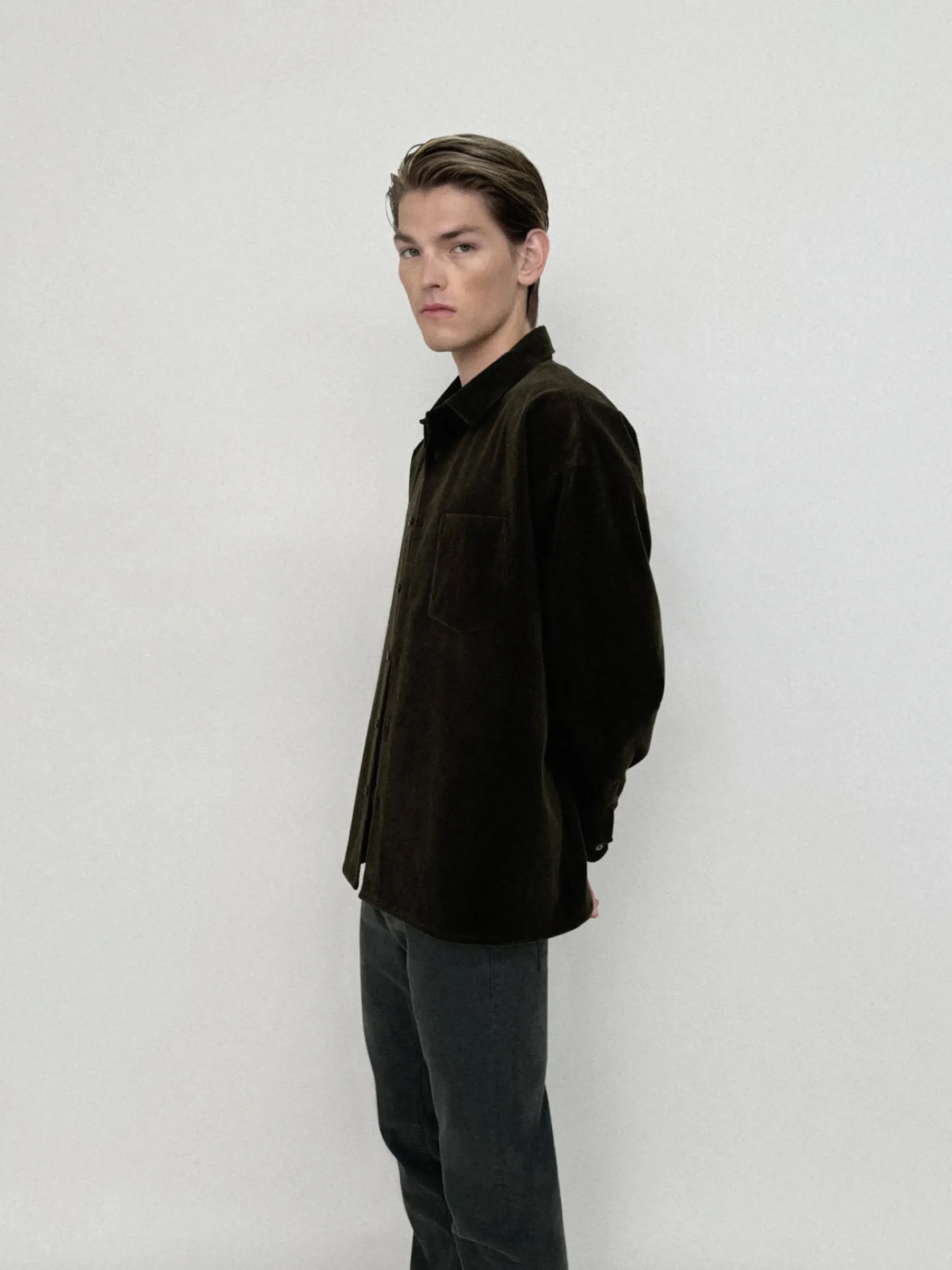 Be the first to review “FRAME Relaxed Corduroy Overshirt in Dark Olive” Cancel reply