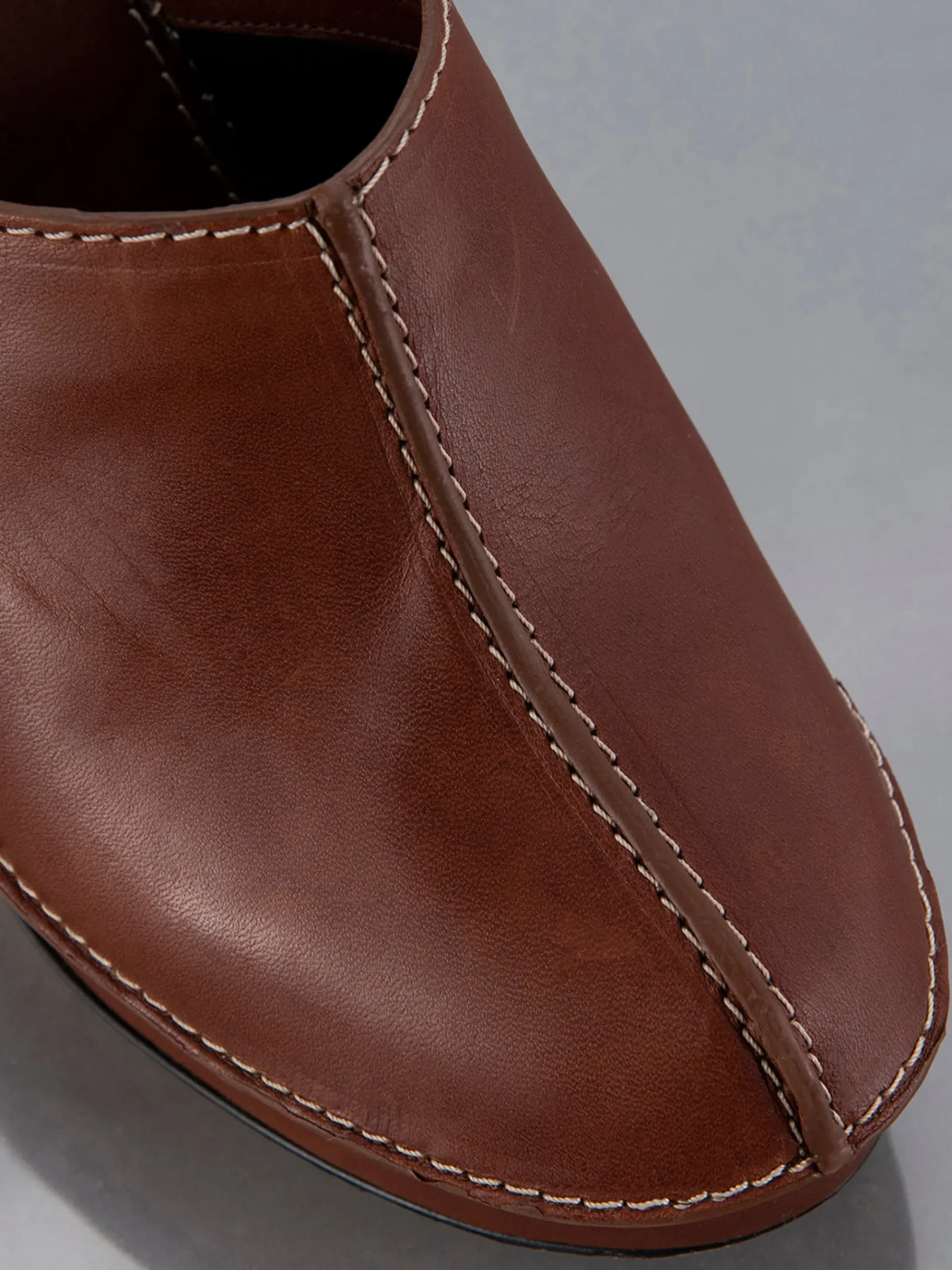This high-heeled clog has a retro sensibility. Crafted in a beautiful vegetable-tanned leather that patinas over time, it’s finished with an artisinal whip stitch–the result of 3 hours of hand-stitching.