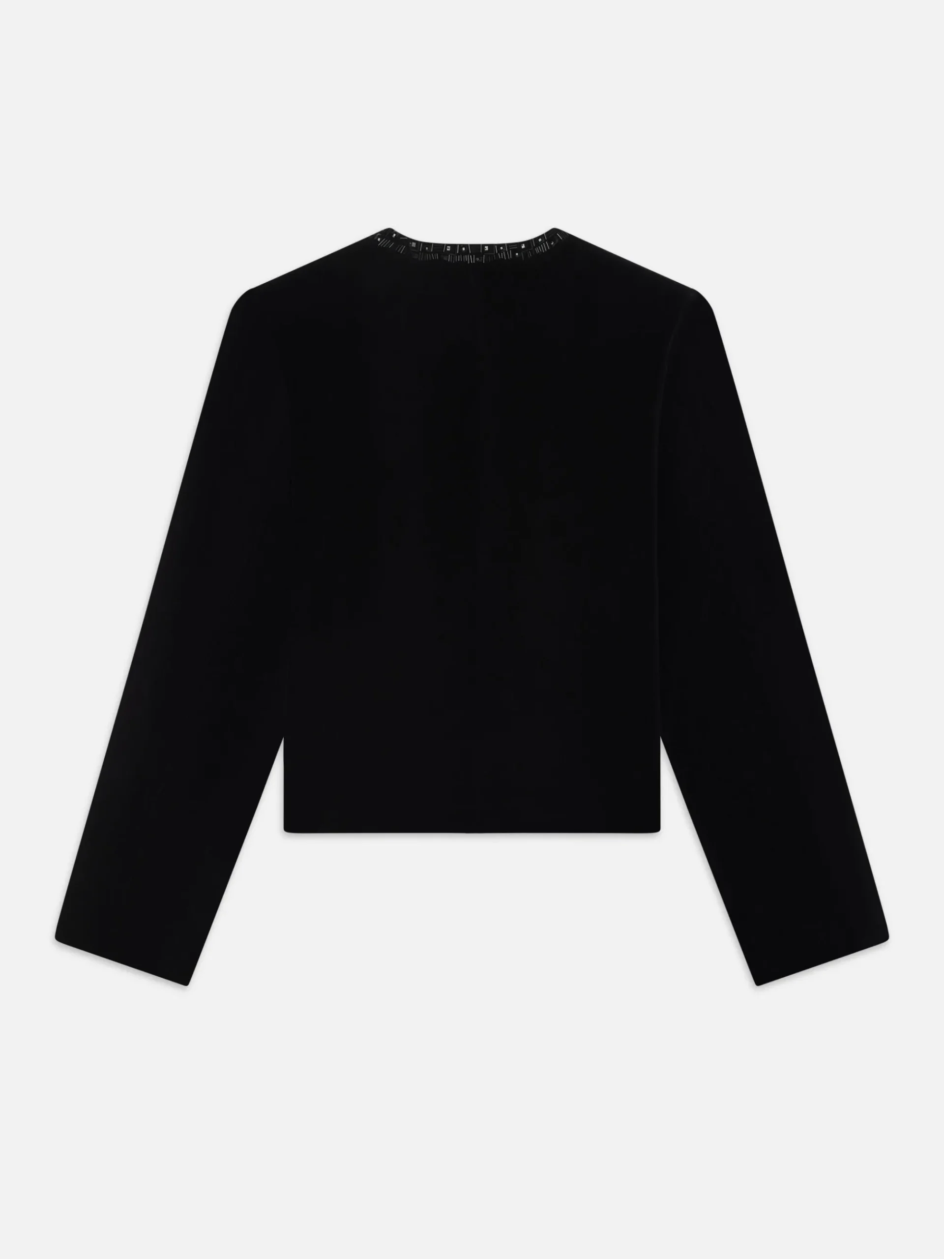 In Winter 2024, it’s all about subtle sparkle. Taking a cue from runways, the Embellished Velvet Jacket has a classic silhouette with reflective beading that shimmers along the round neckline and down the front. A sumptuous finish to a tailored trouser or dress.