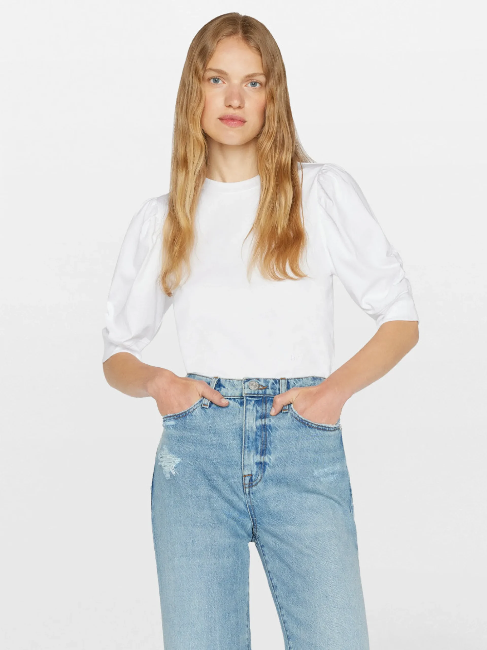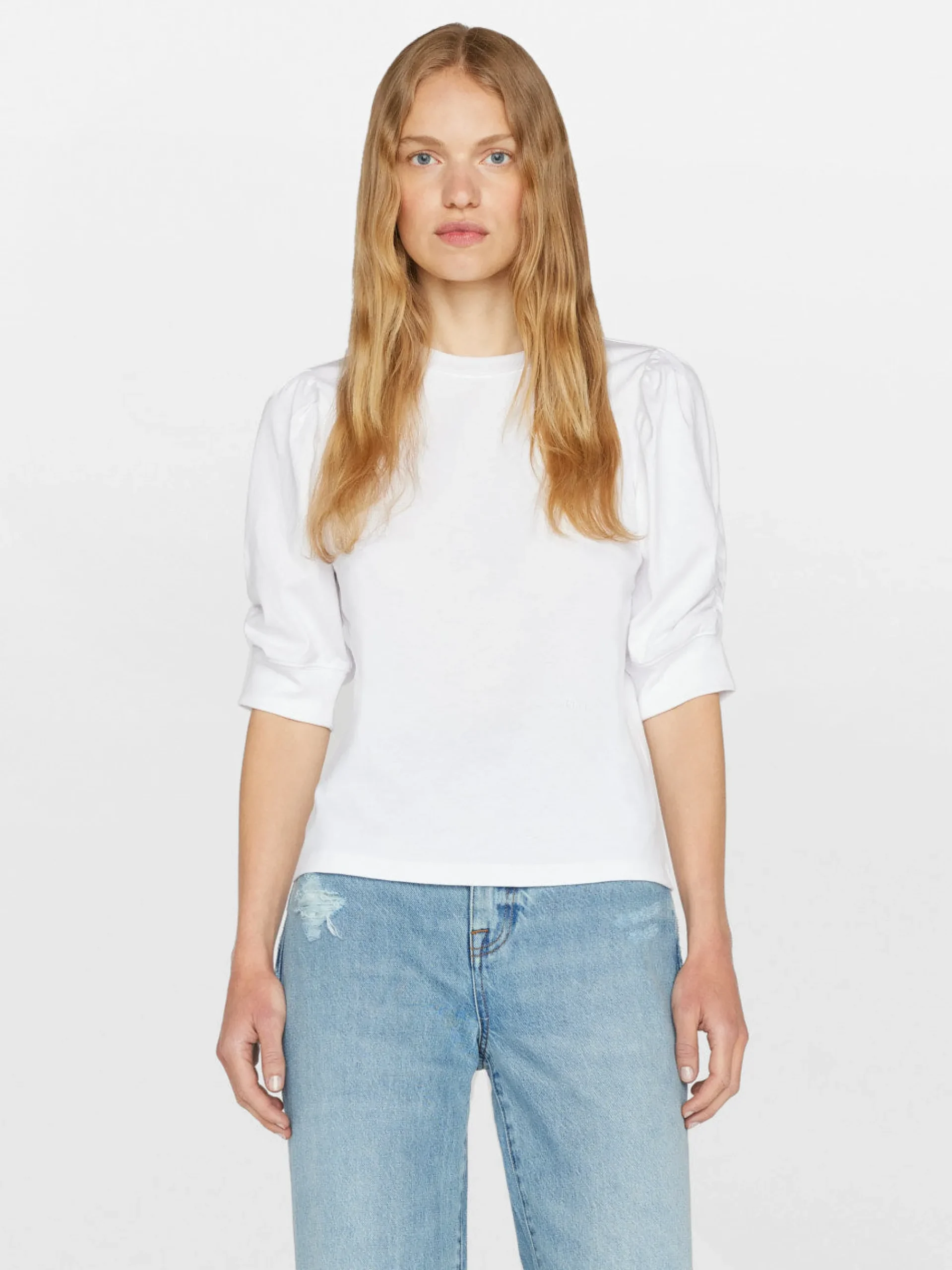Our bestselling Frankie Tee is done in soft Blanc cotton, with a slim fit and elbow-grazing puff sleeves. Pull yours on with jeans for coffee runs, style it with trousers and pumps for office outfitting, and definitely pack Frankie in your weekender bag.