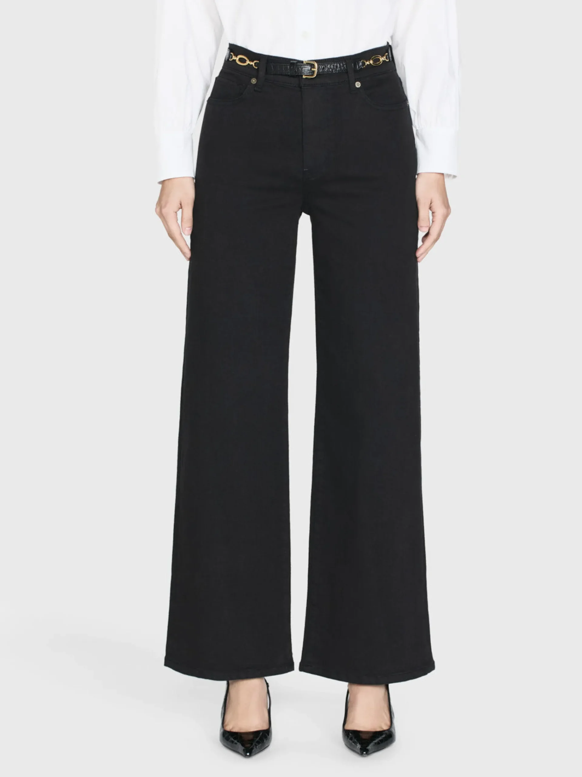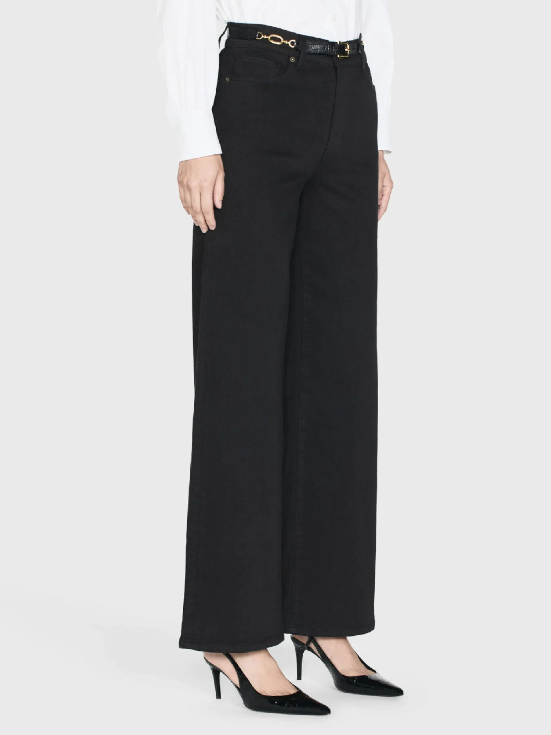 A FRAME introduction to the bestselling palazzo silhouette designed with a flattering high rise waist, fitted hip, and subtle wide-leg flare. Crafted from a stretch cotton blend for soft and comfortable wear.