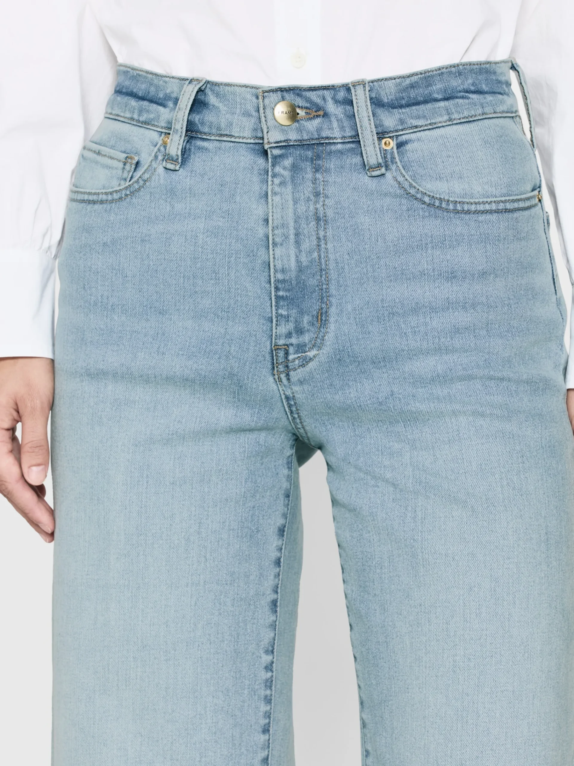 A FRAME introduction to the bestselling palazzo silhouette, this pair is designed with a flattering high rise, fitted hip, and subtle wide-leg flare that hits at the floor. Crafted from a sustainable, super-stretch cotton blend for soft and comfortable wear.