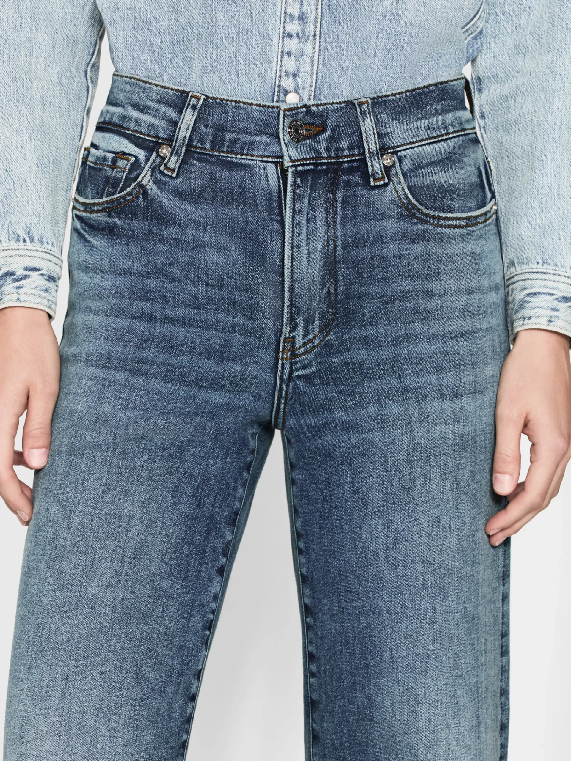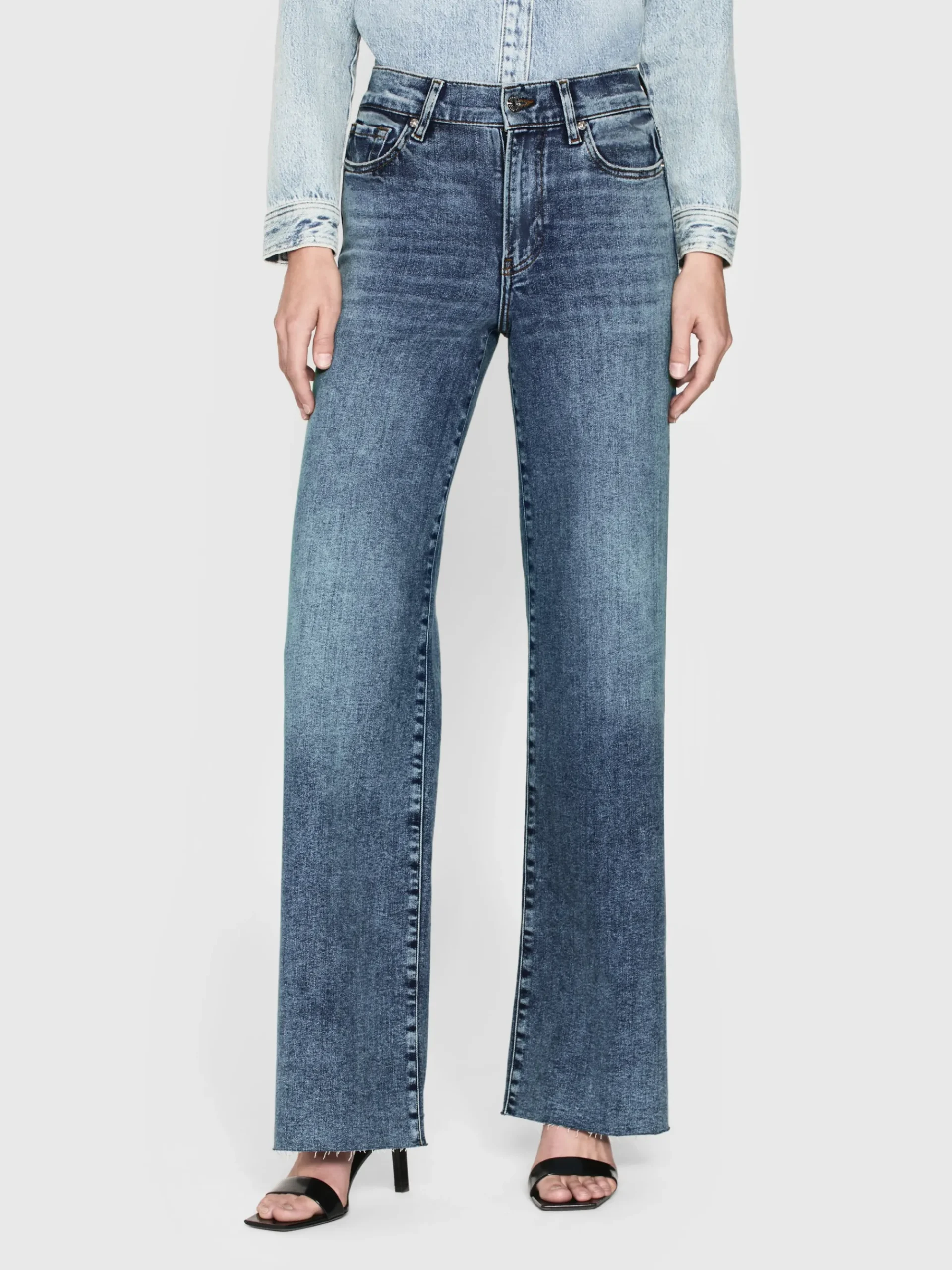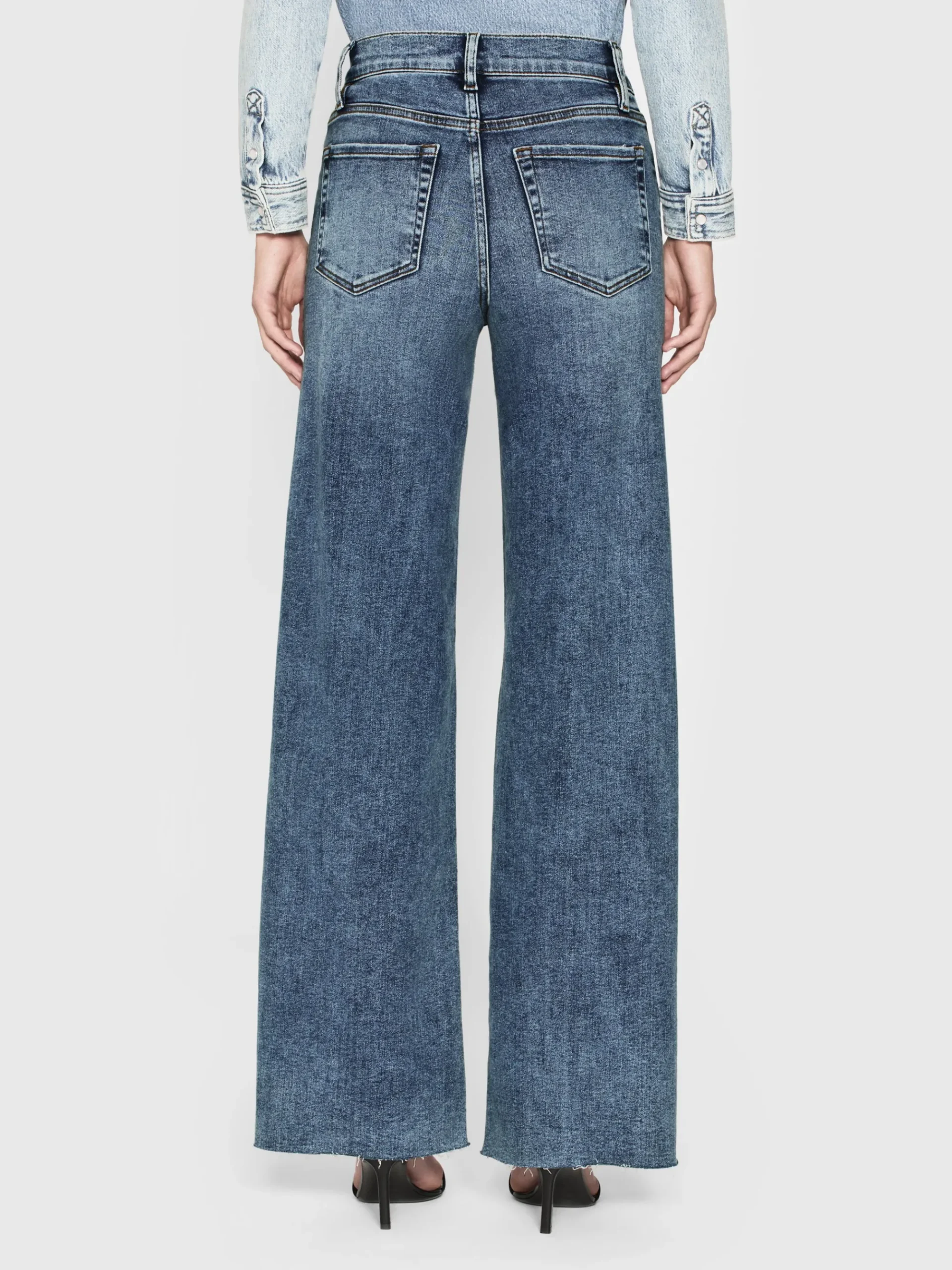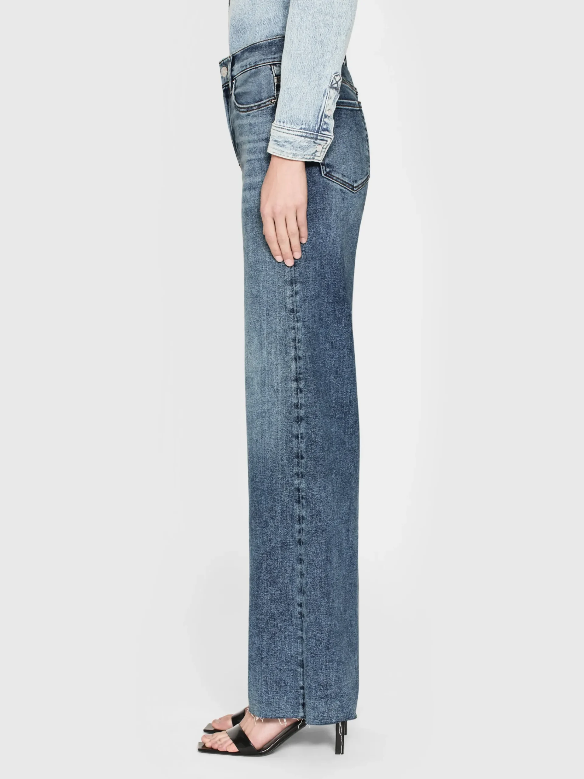 A FRAME introduction to the best-selling palazzo silhouette, this pair is designed with a flattering high rise, fitted hip, and subtle wide-leg flare that hits at the floor. Crafted from our coveted super stretch denim for soft, comfortable wear.