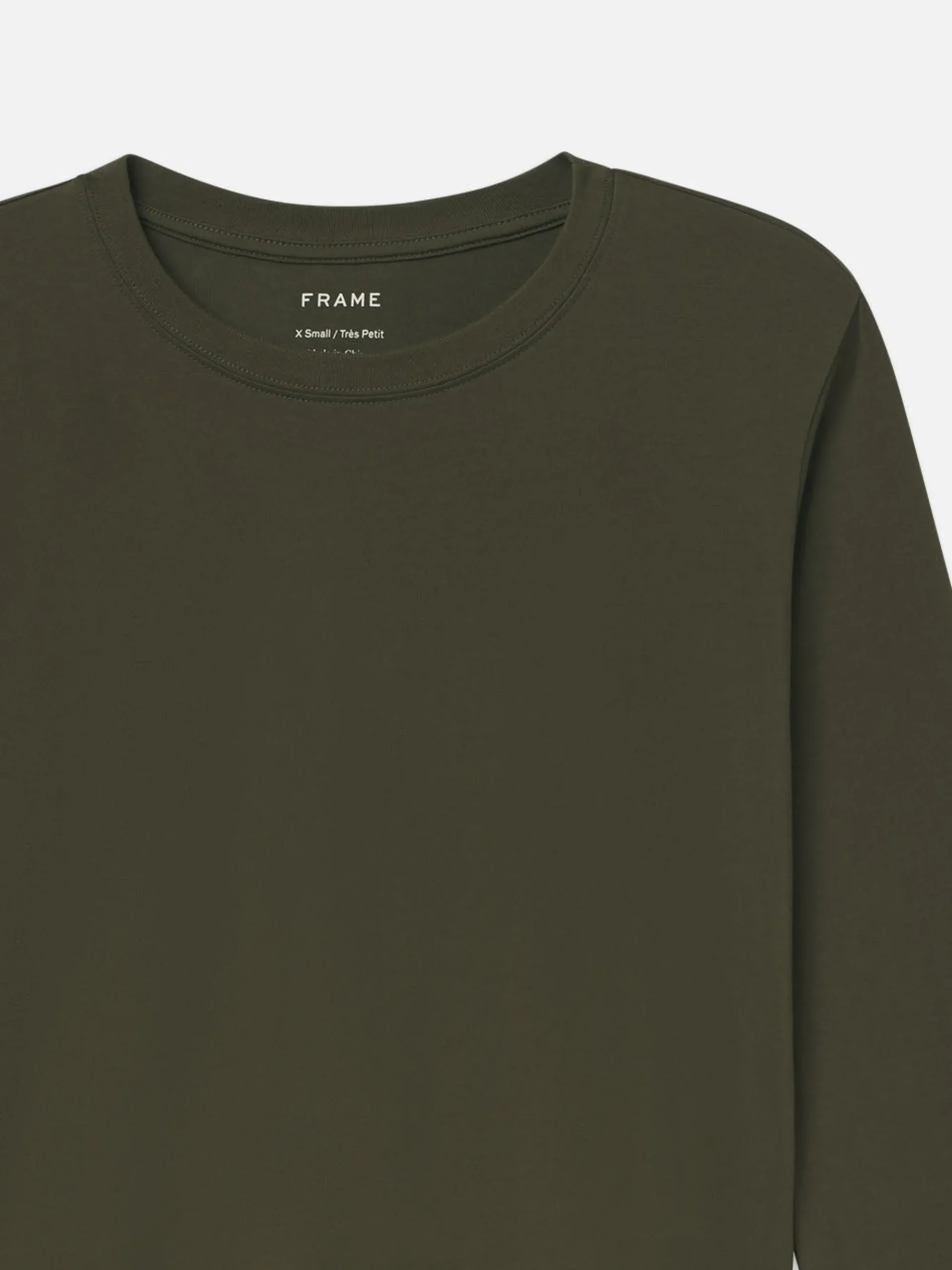 Women FRAME Long Sleeve Baby Tee in Rich Military