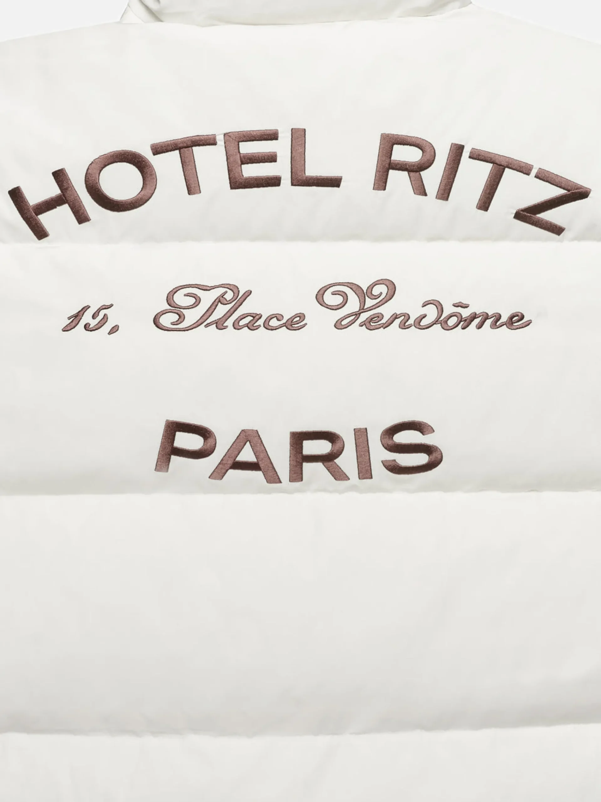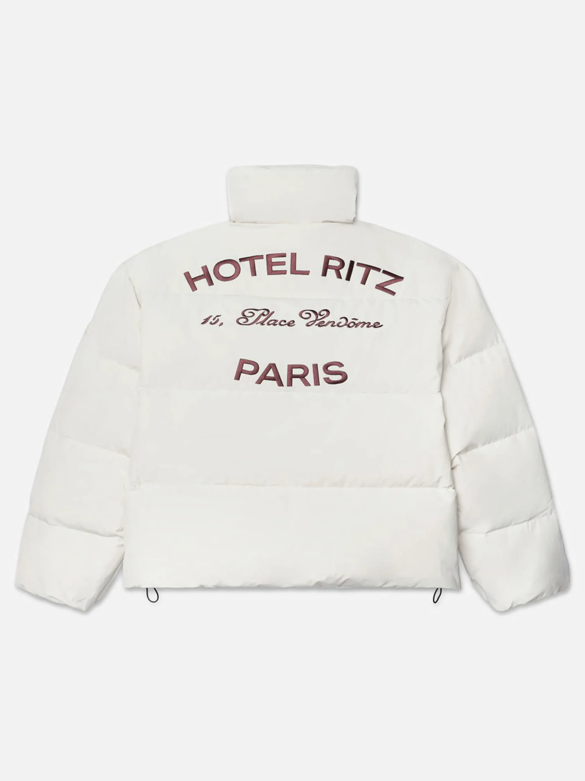 Cropped for a fit that works with wide-legs and winter sportswear, zip up the neck on this abundantly warm Cream puffer to keep out harsh city winds—then wear it open for aprés hour. Crafted from cotton and recycled polyester and finished with functional drawstring cords and the FRAME and Ritz Paris logos in contrasting Bordeaux.