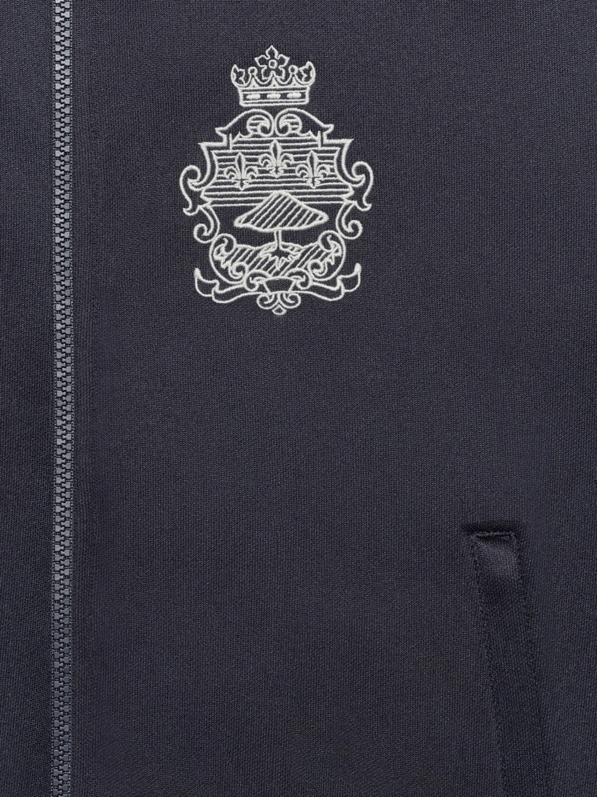 A collegiate-inspired sporty set inspired by languid days enjoying the Ritz Paris amenities? We’re tracking. In classic Navy with white-striped cuffs, collar, and hem, this slightly oversized, full-zip track jacket has pockets, dropped shoulders and a cropped fit for pairing with the matching pants, plus the Ritz Paris and FRAME logos embroidered at the front.