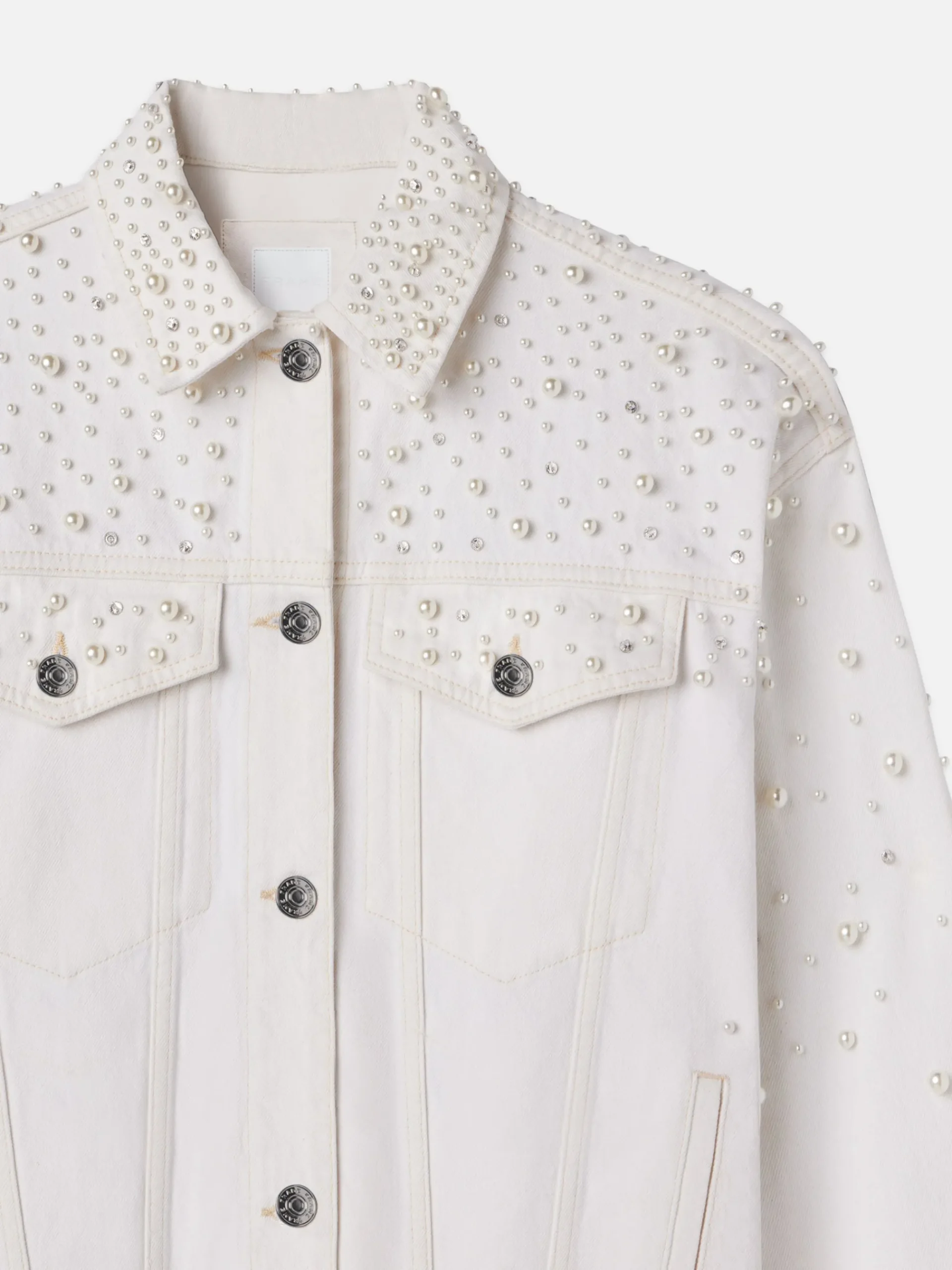 Crafted by four specialists taking four hours to complete each jacket, this oversized trucker jacket is embellished with 90 hand-stitched crystals and 1400 pearls. It’s a special wardrobe addition perfect for bachelorettes, festive gatherings, or just because. Complete the vision in The Pearl Barrel.