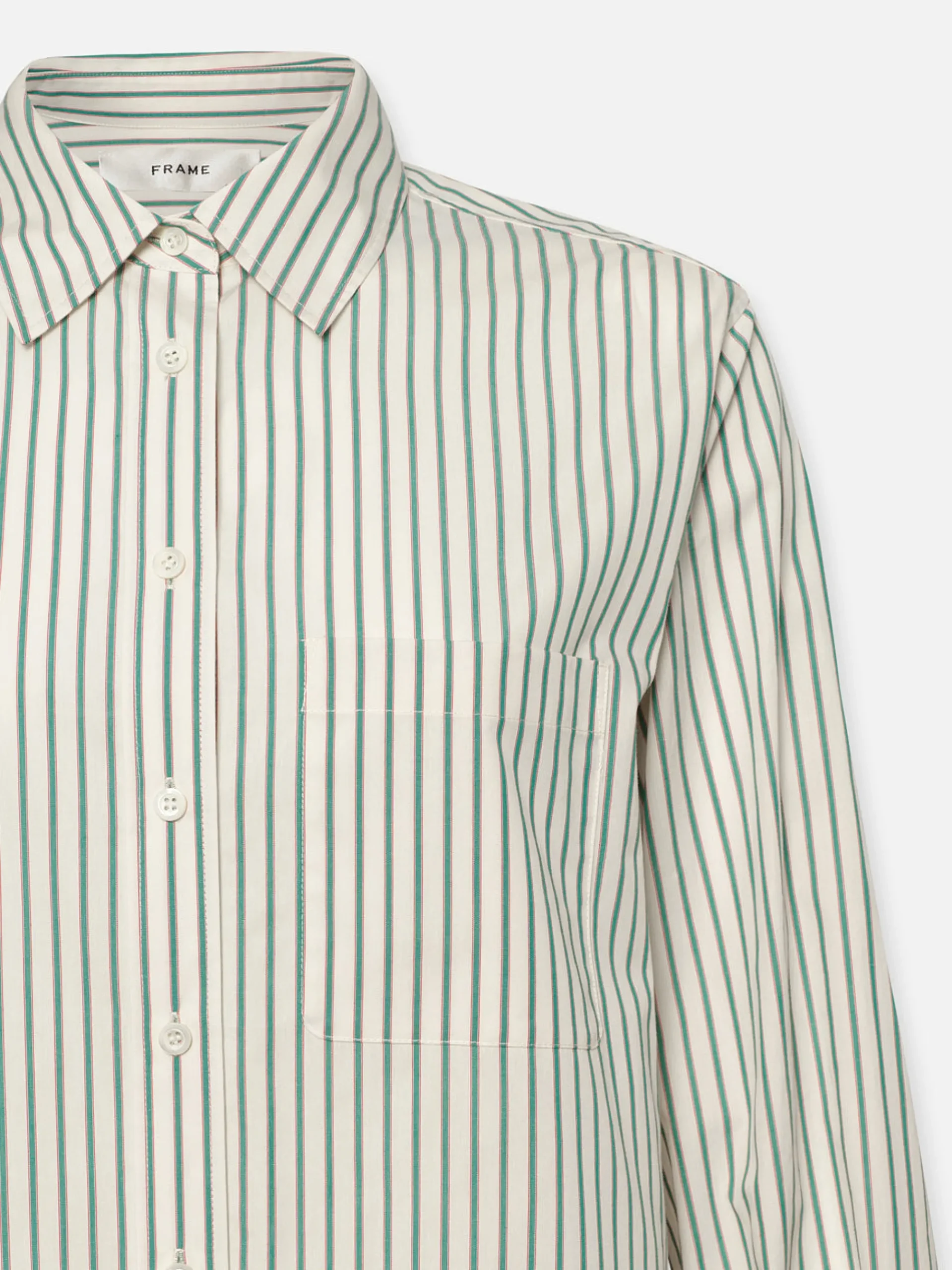 Women FRAME The Borrowed Pocket Shirt in Green Gem Multi