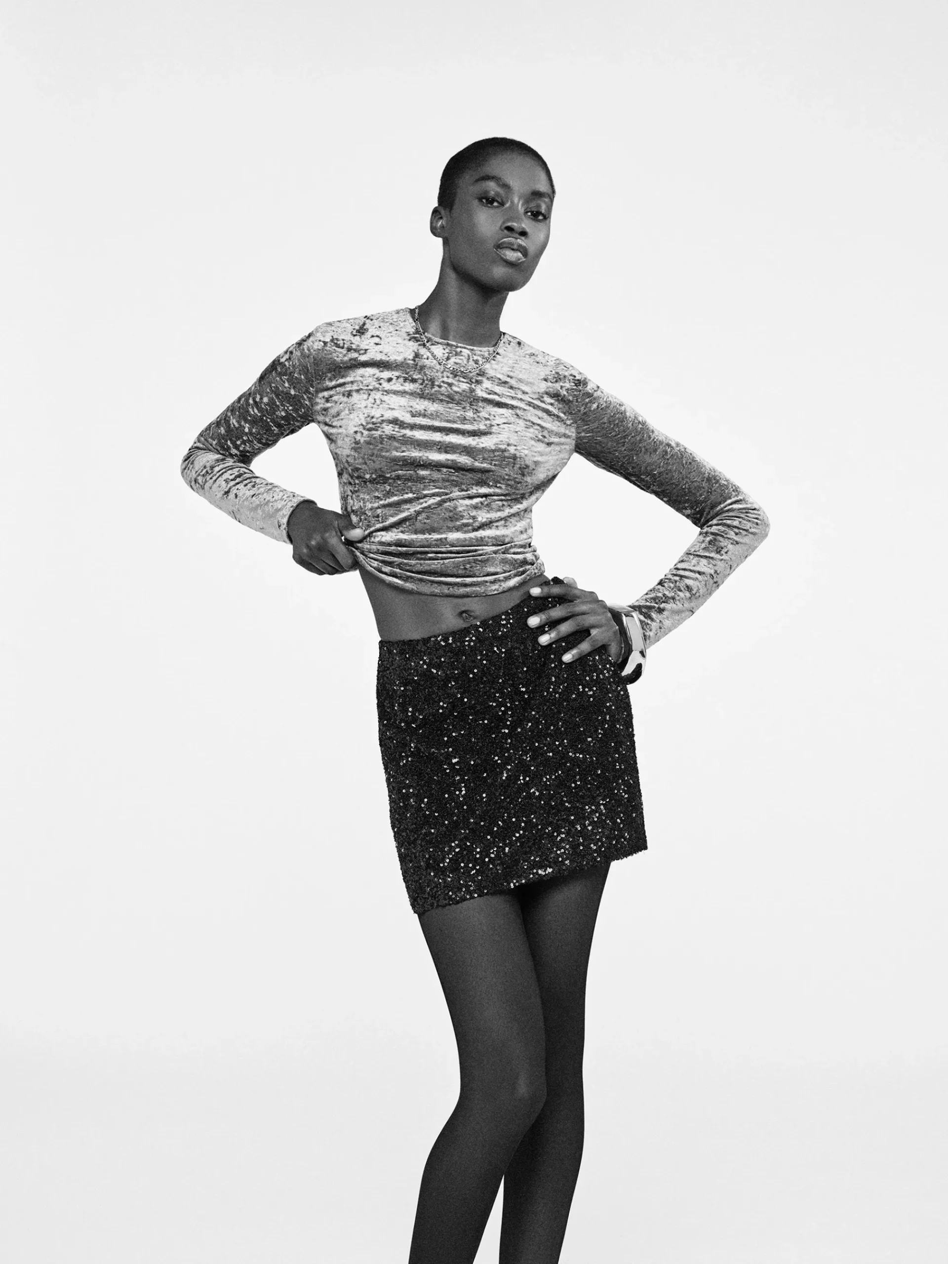 Swap your basic long-sleeve top for standout texture. Crafted from soft velvet, this classic form-fitting design gives a textural twist to fall and winter dressing. Zip her on with a skirt, or denim for an elevated everyday look.