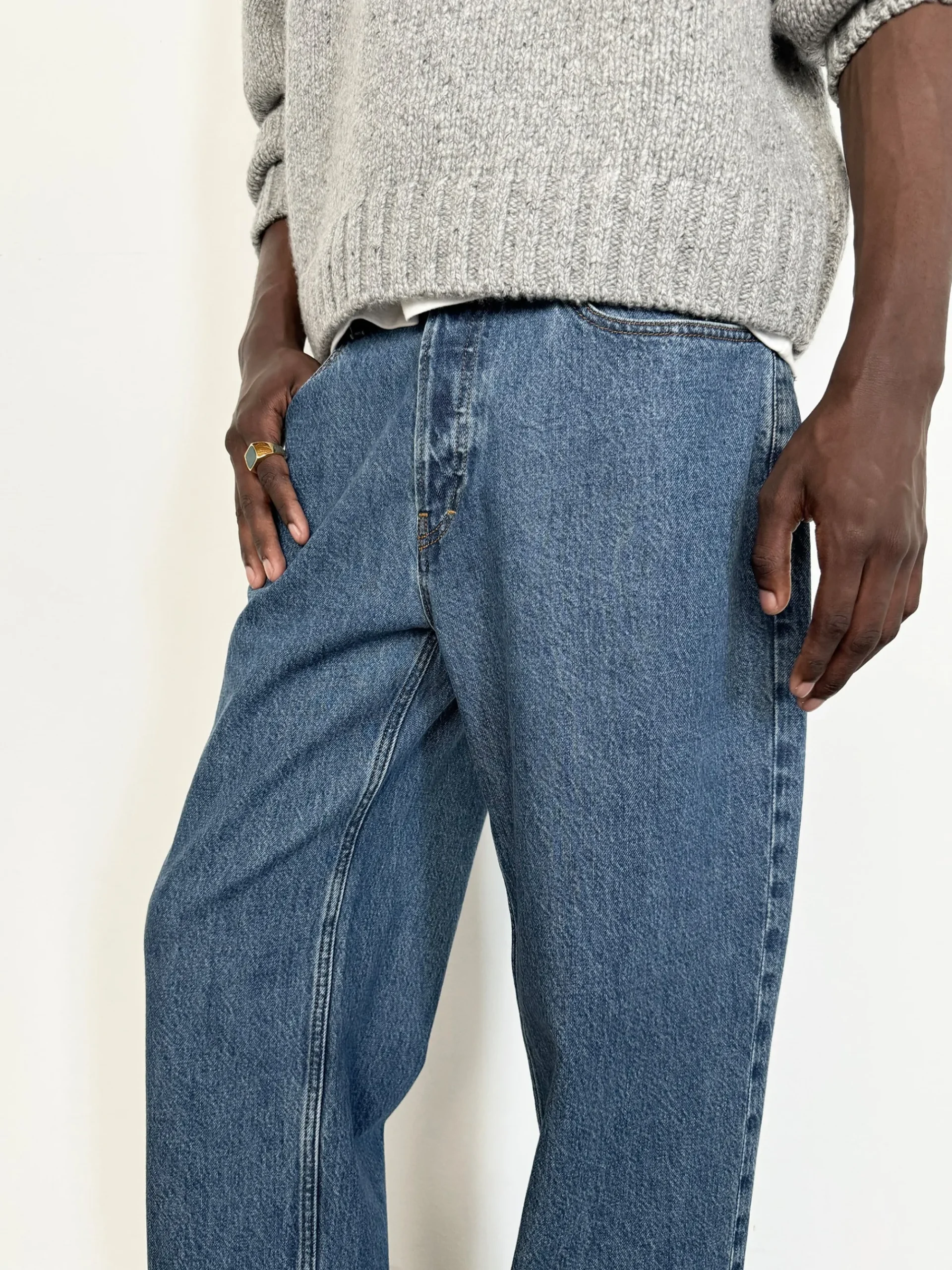 Lean into the oversized craze that’s taken the fashion world by storm with a street-style pair that falls wide and long. Crafted from sustainable and recycled cotton, the Baggy Jean is cut in rigid denim for a true vintage look and feel. Note the clean hem that spills past the ankle.