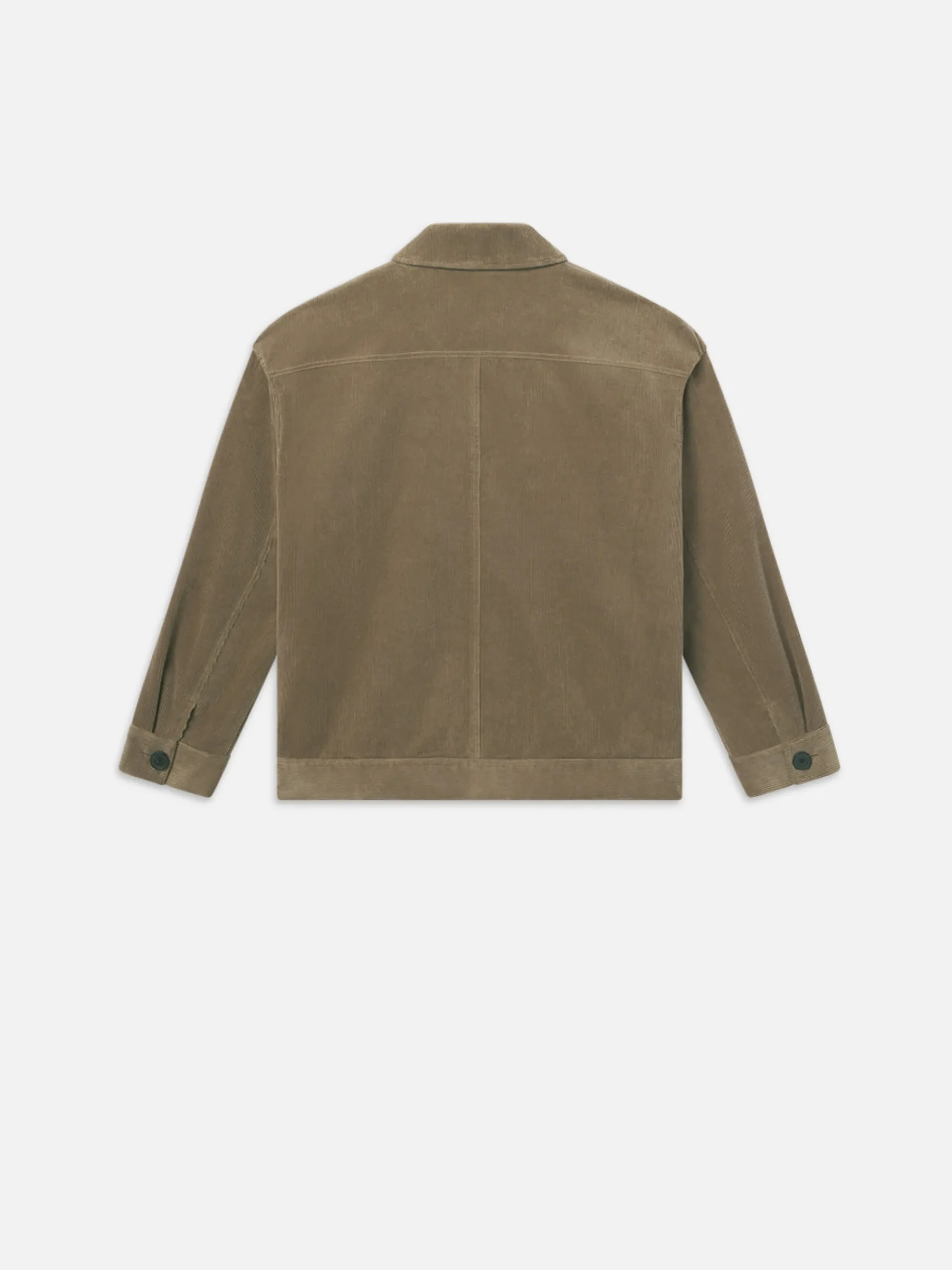 Designed in a classic trucker silhouette in a micro rib corduroy fabric, this buttoned jacket offers a clean pointed collar, subtle drop shoulders, and elevated seam detailing throughout.