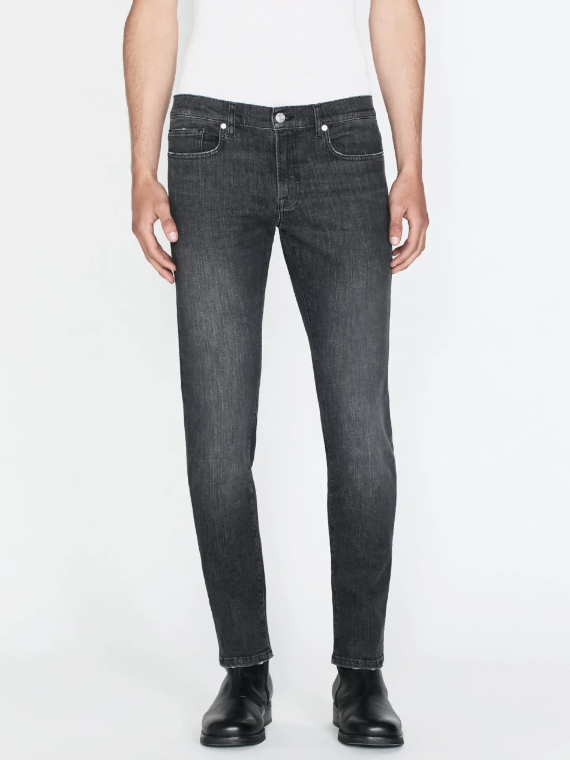 A FRAME signature jean, this style is designed with a classic 5-pocket construction, comfortable mid rise, flattering straight leg, and tapered slim fit at the leg opening. Crafted from smooth comfort stretch denim.