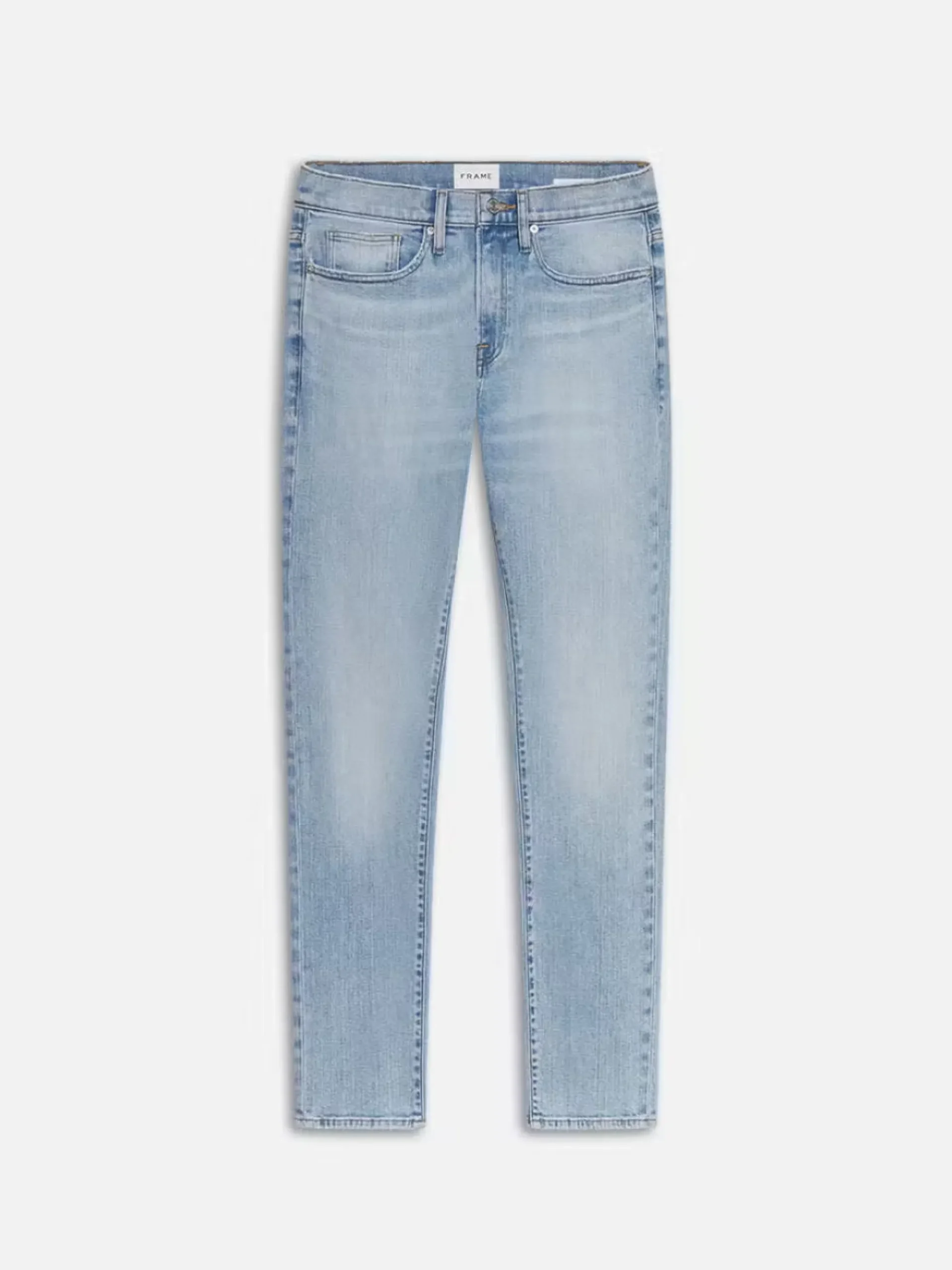 A FRAME signature jean, this style is designed with a classic 5-pocket construction, comfortable mid rise, flattering straight leg, and tapered slim fit at the leg opening. Crafted from smooth comfort stretch denim.