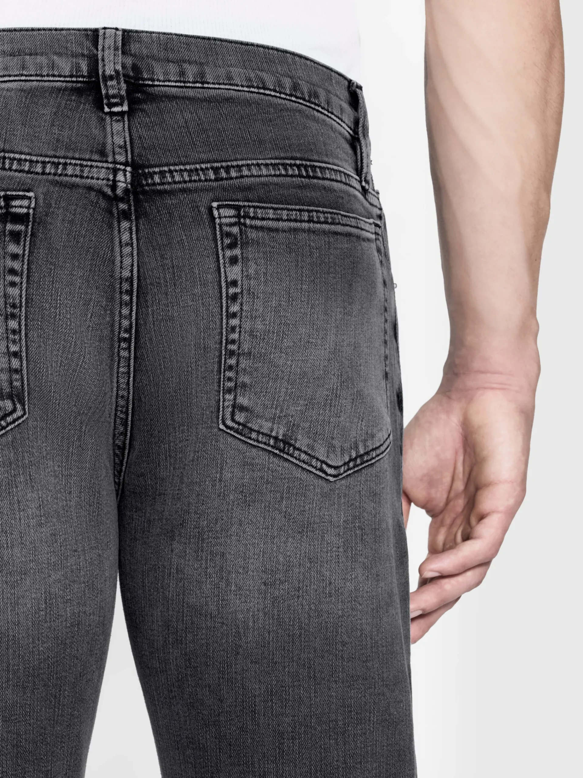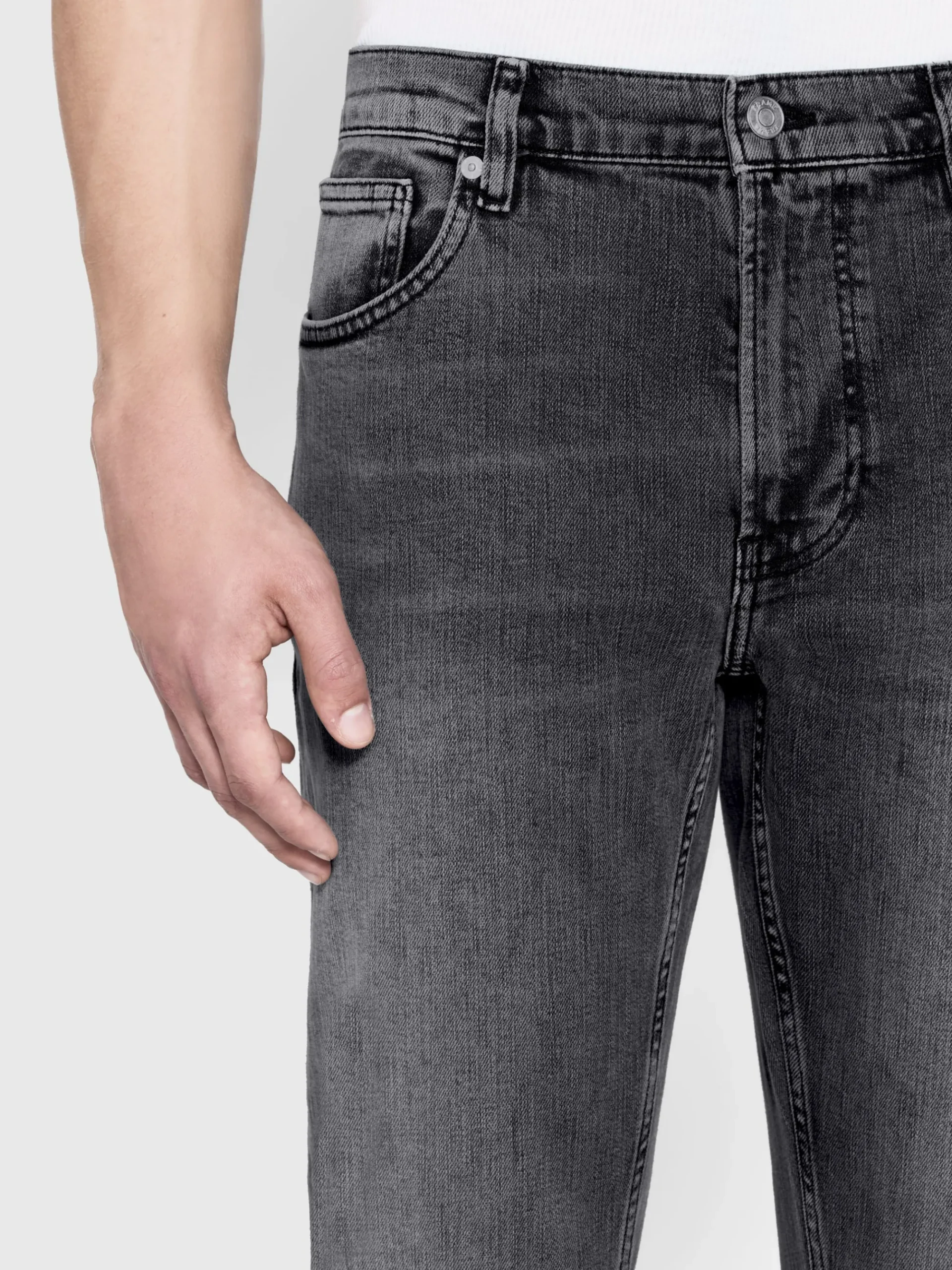 Our mid-rise, straight-leg silhouette is cut from a stretch-cotton denim. This 5-pocket pair easily achieves a smart, casual look with its gray wash.