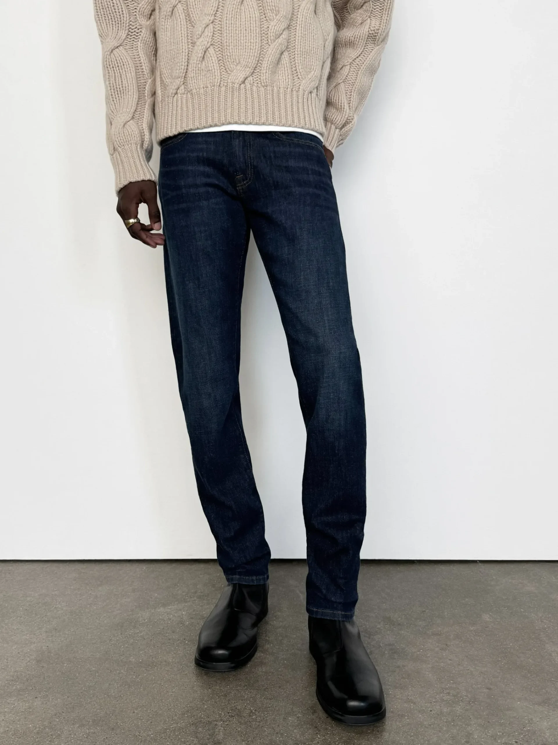 Our mid-rise, straight-leg silhouette is cut from a stretch-cotton denim. This 5-pocket pair easily achieves a smart, casual look in any wash.