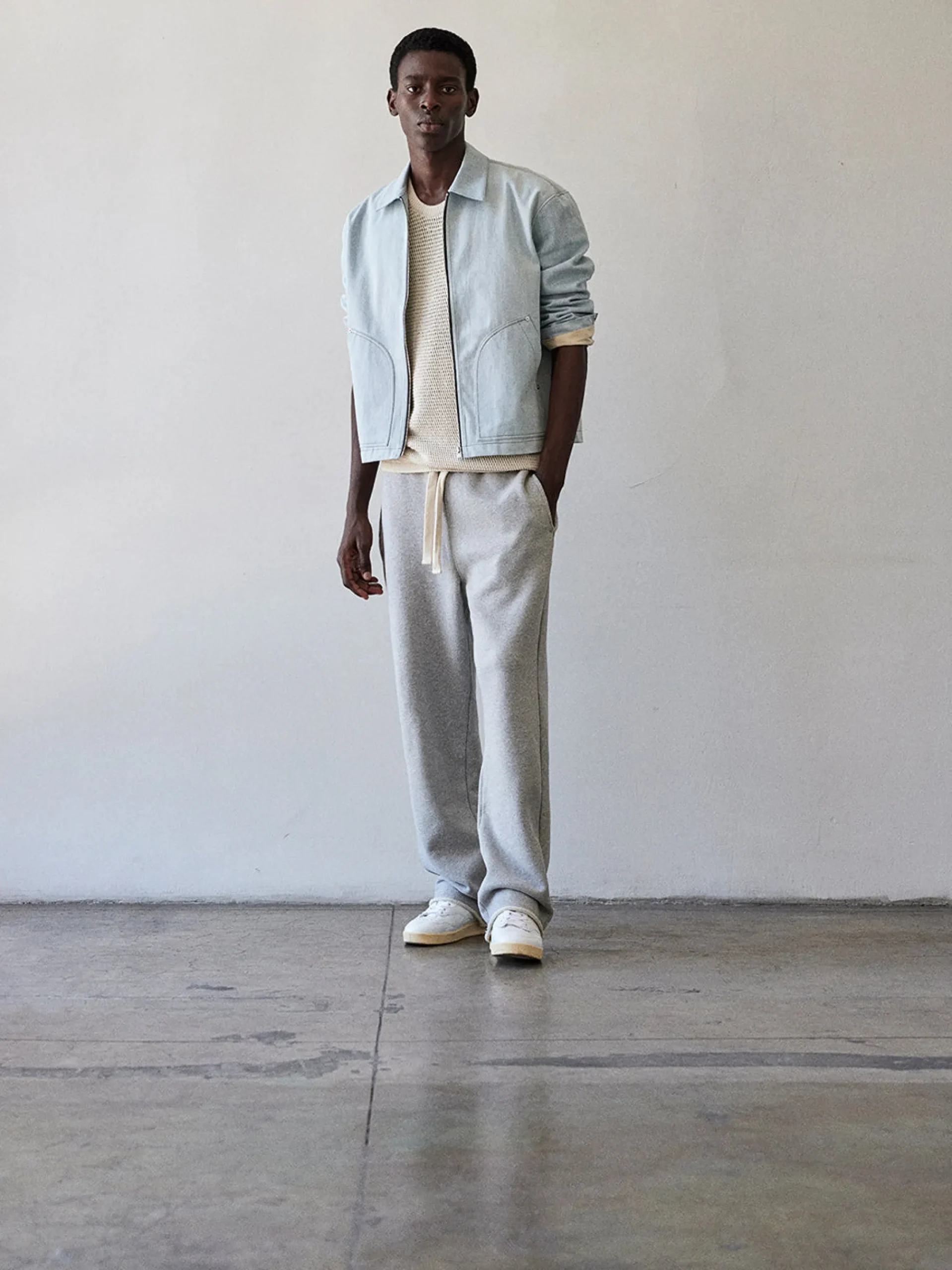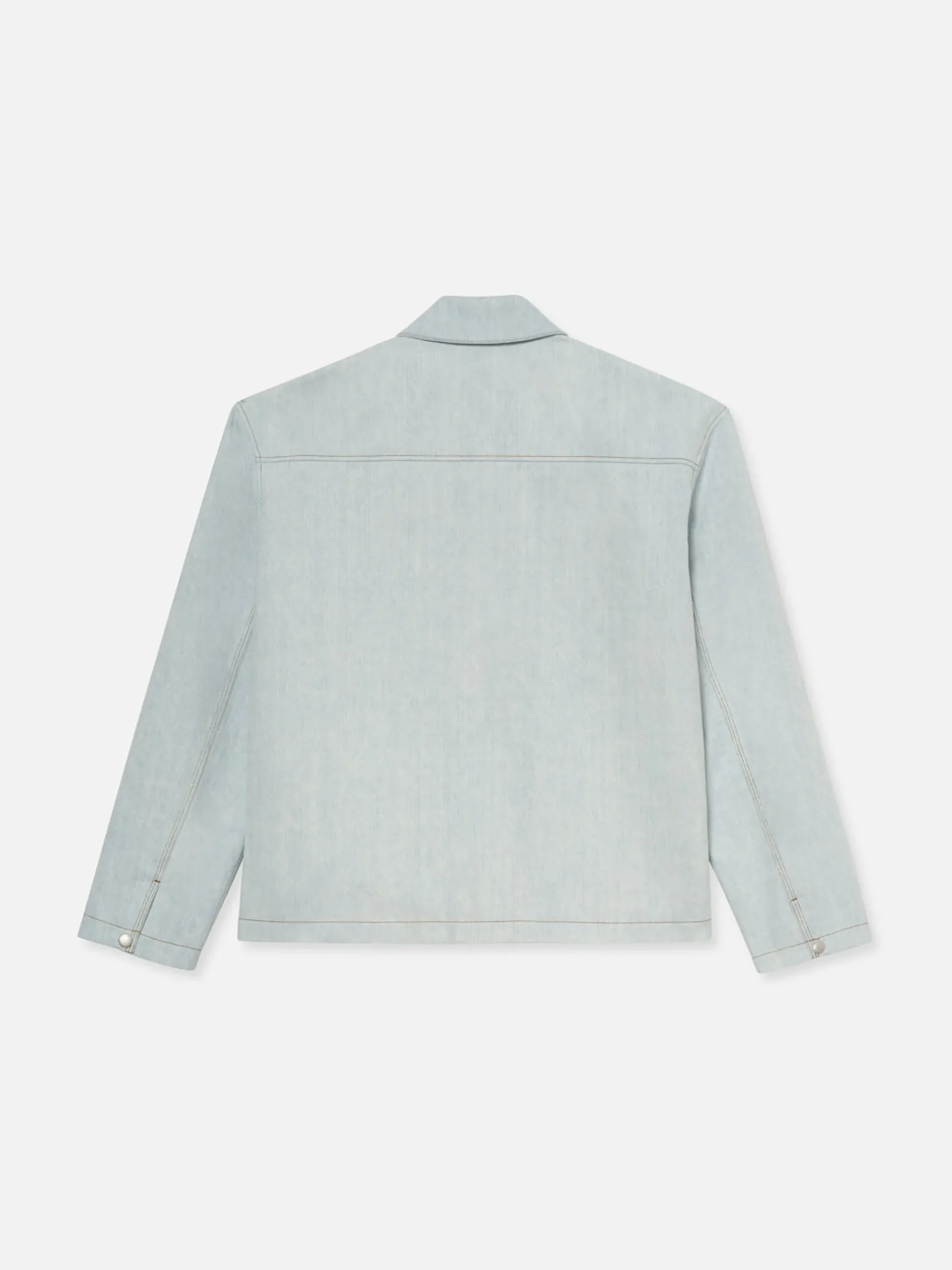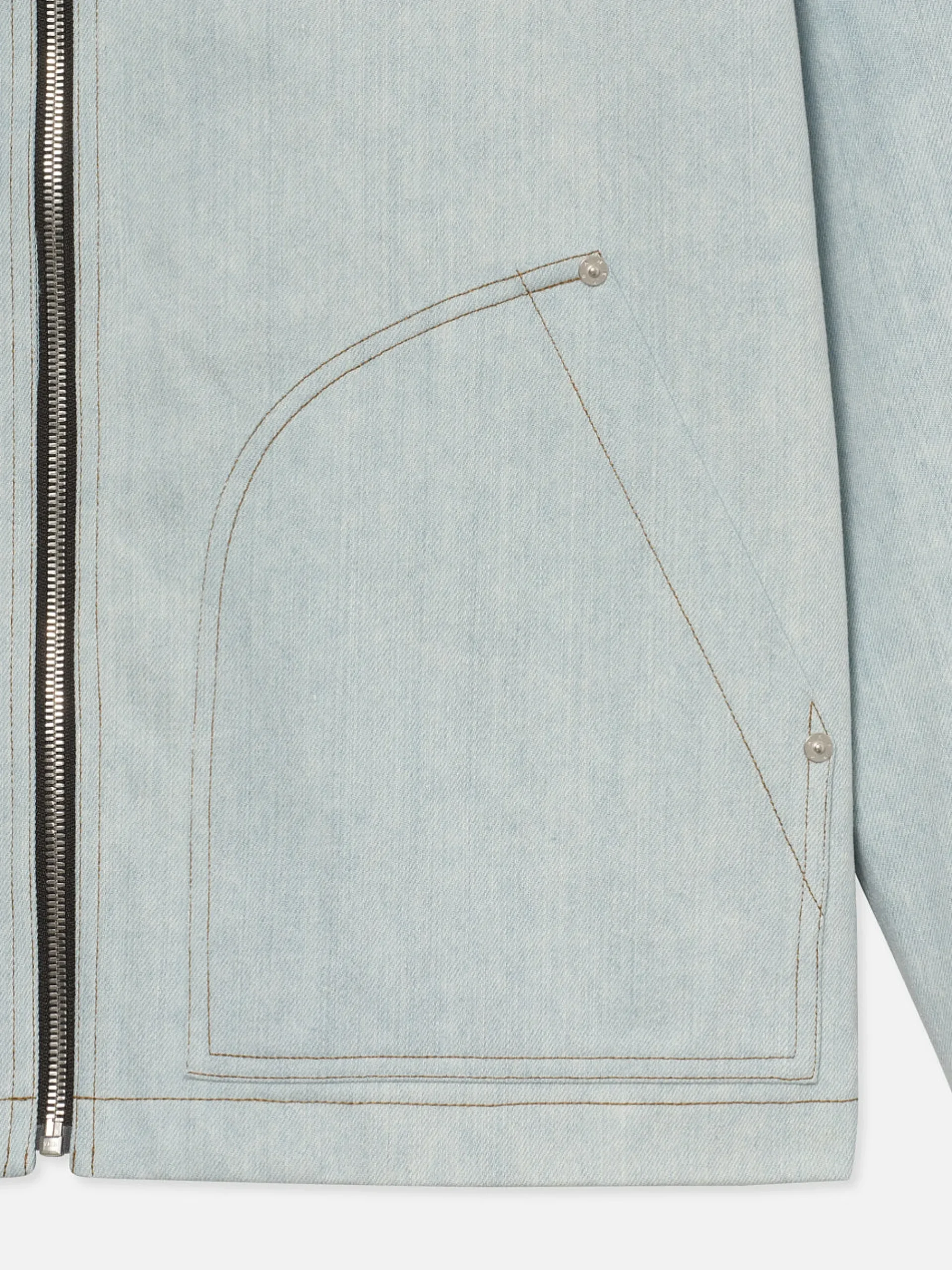 Inspired by easygoing California style, this trucker jacket is made of lightweight 100% cotton denim washed to the palest of blues. It has a pointed collar, large curved side pockets, contrast stitching, plus a full-length front zipper.