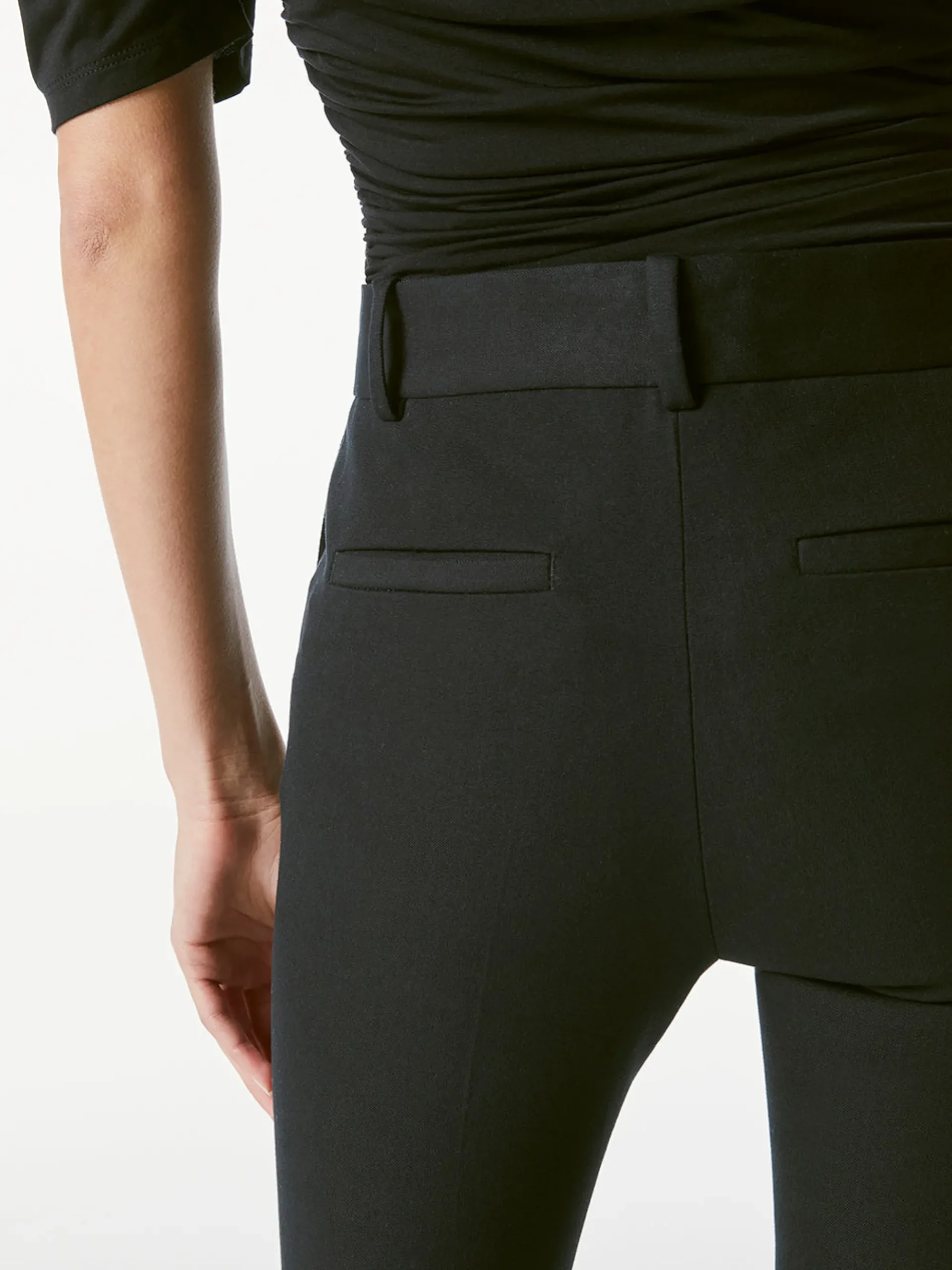 We’ve reimagined our best-selling cropped boot-cut silhouette for polished occasions with a new bi-stretch trouser fabric made from a cotton blend. For effortless style, pair yours with a padded-shoulder tee and gold jewelry.