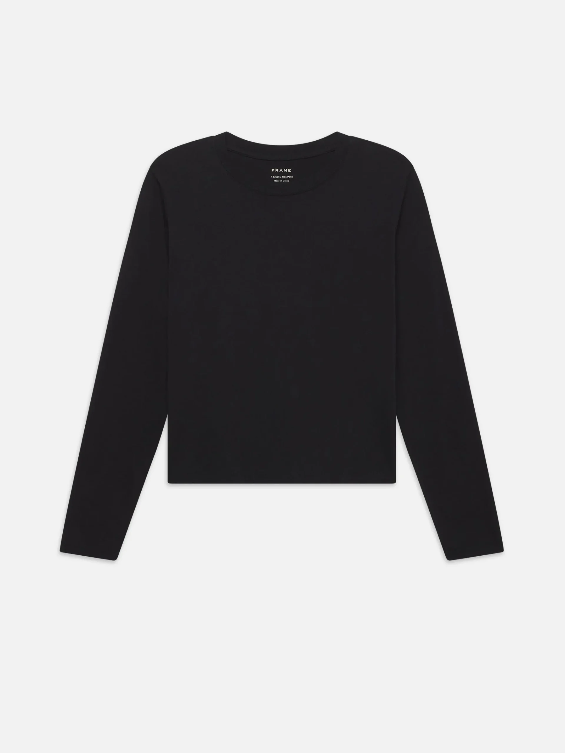 Our best-selling supima cotton baby tee is now available with long sleeves. Indulgently soft and slightly sheer, this everyday essential is cut to a flattering shrunken fit. Wear it solo with jeans or layer it under your go-to jacket.