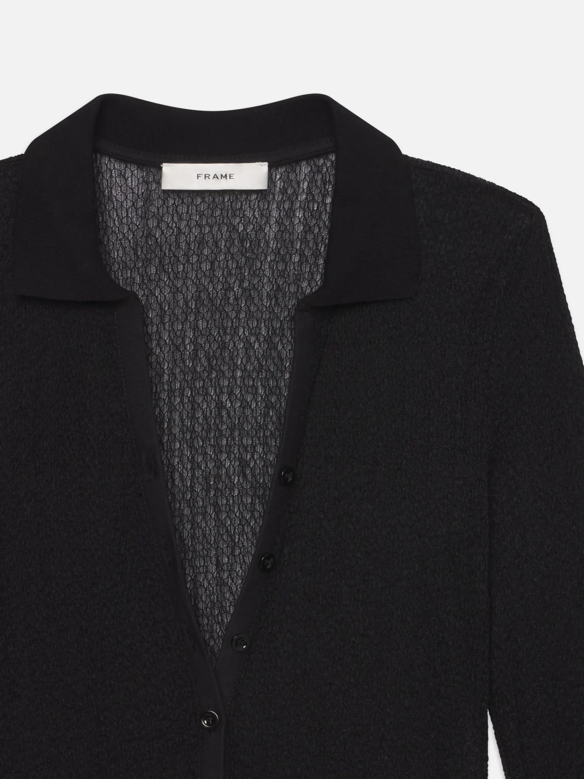 Women FRAME Mesh Lace Long Sleeve Polo in