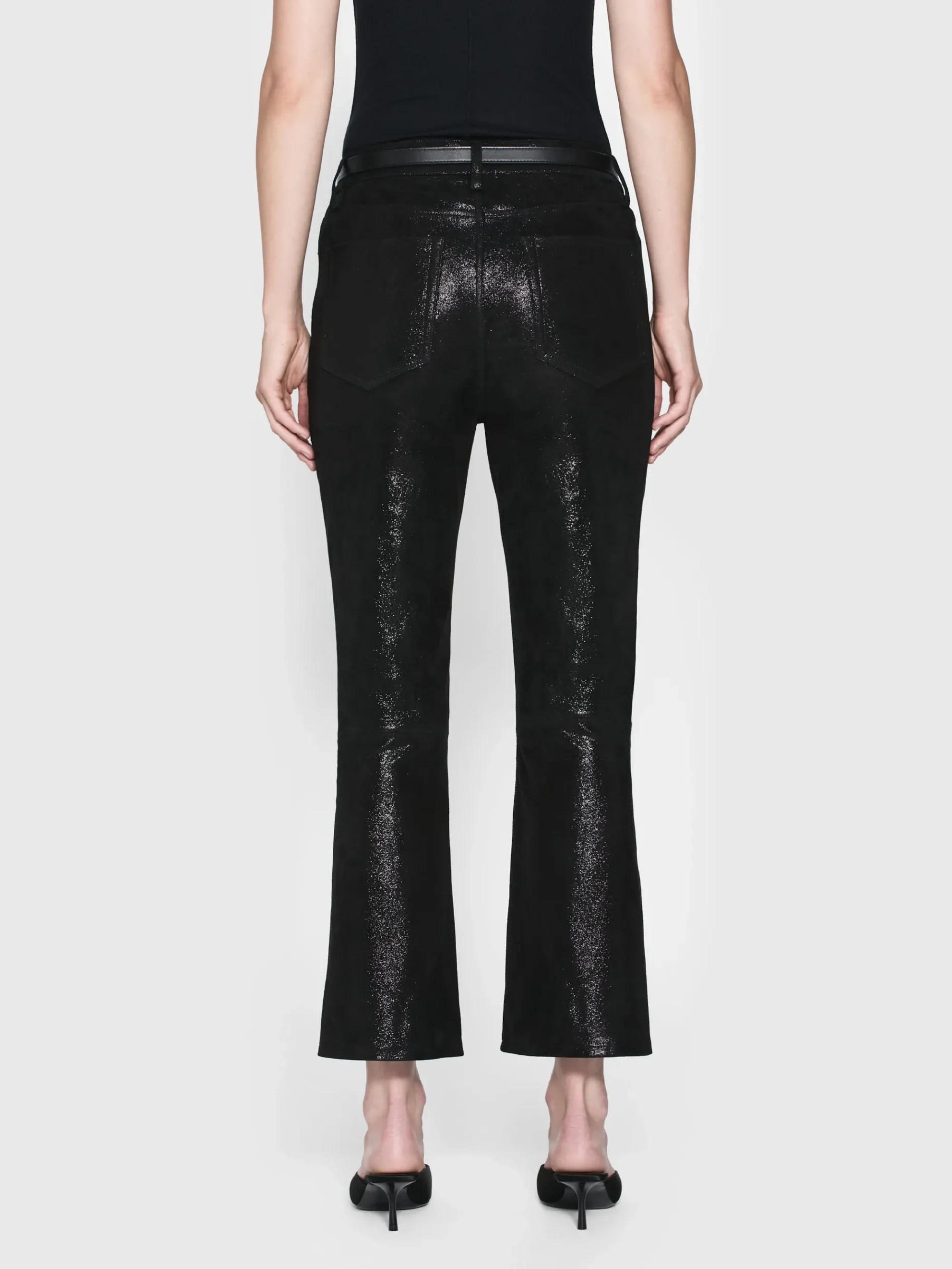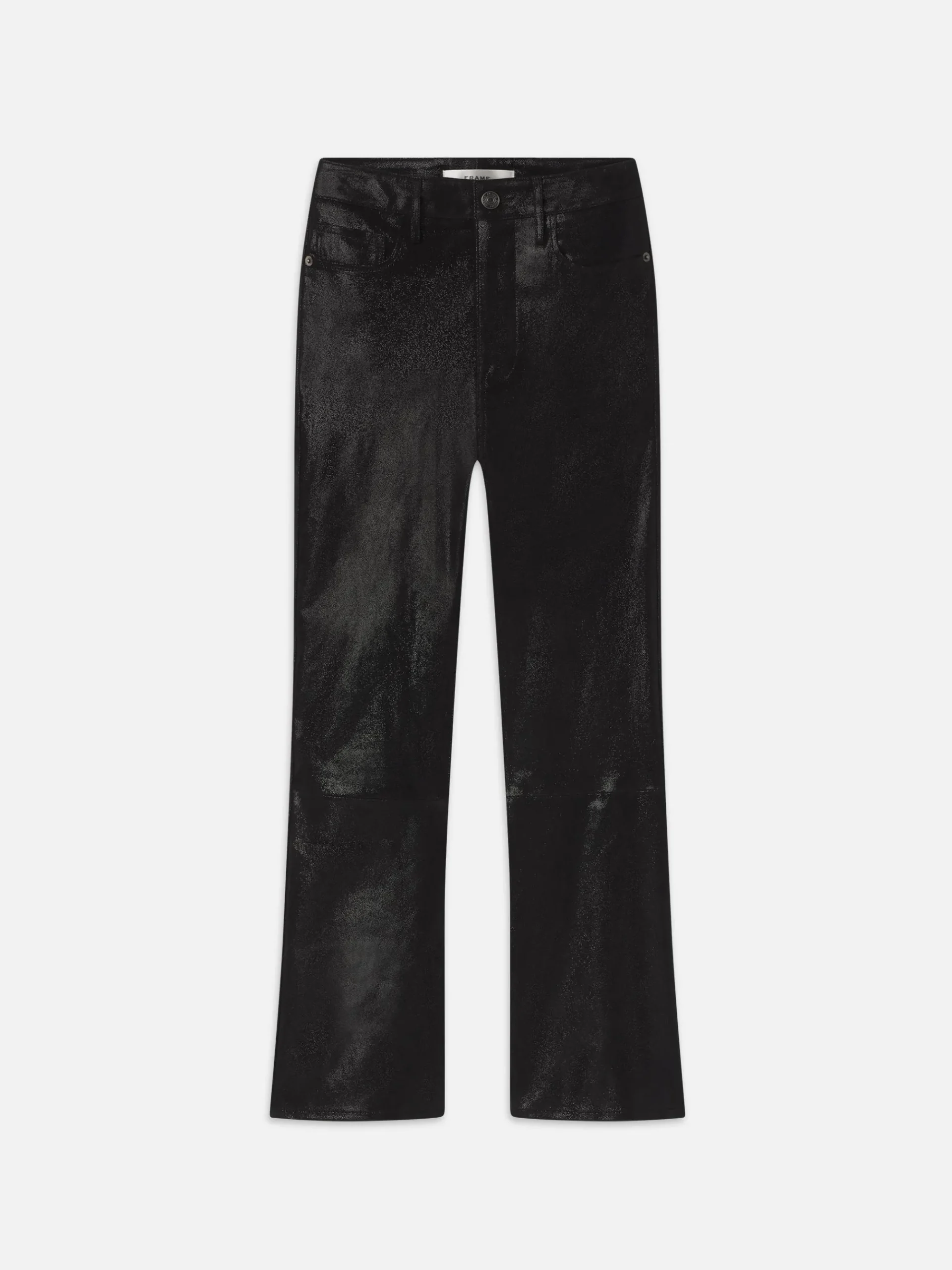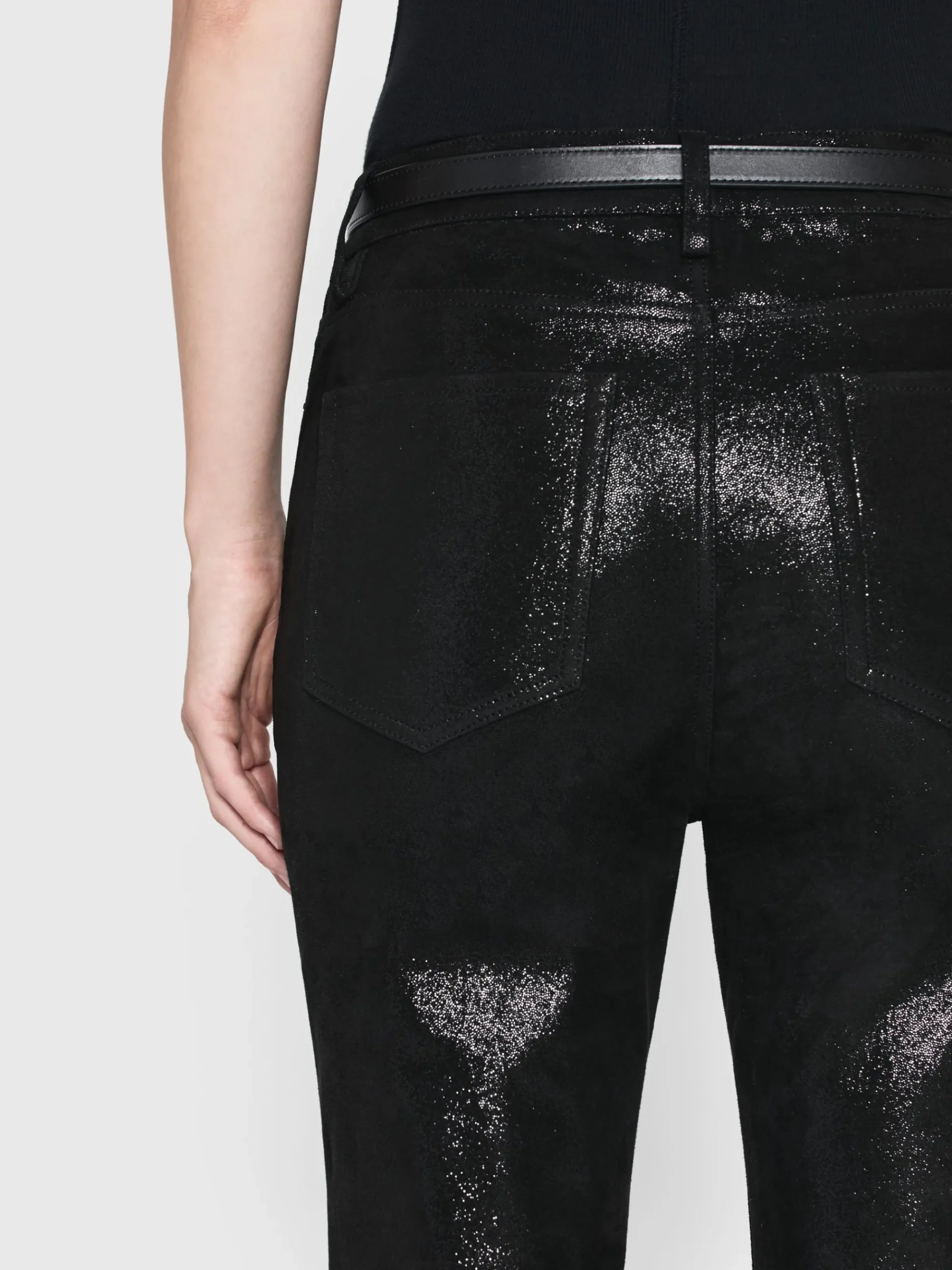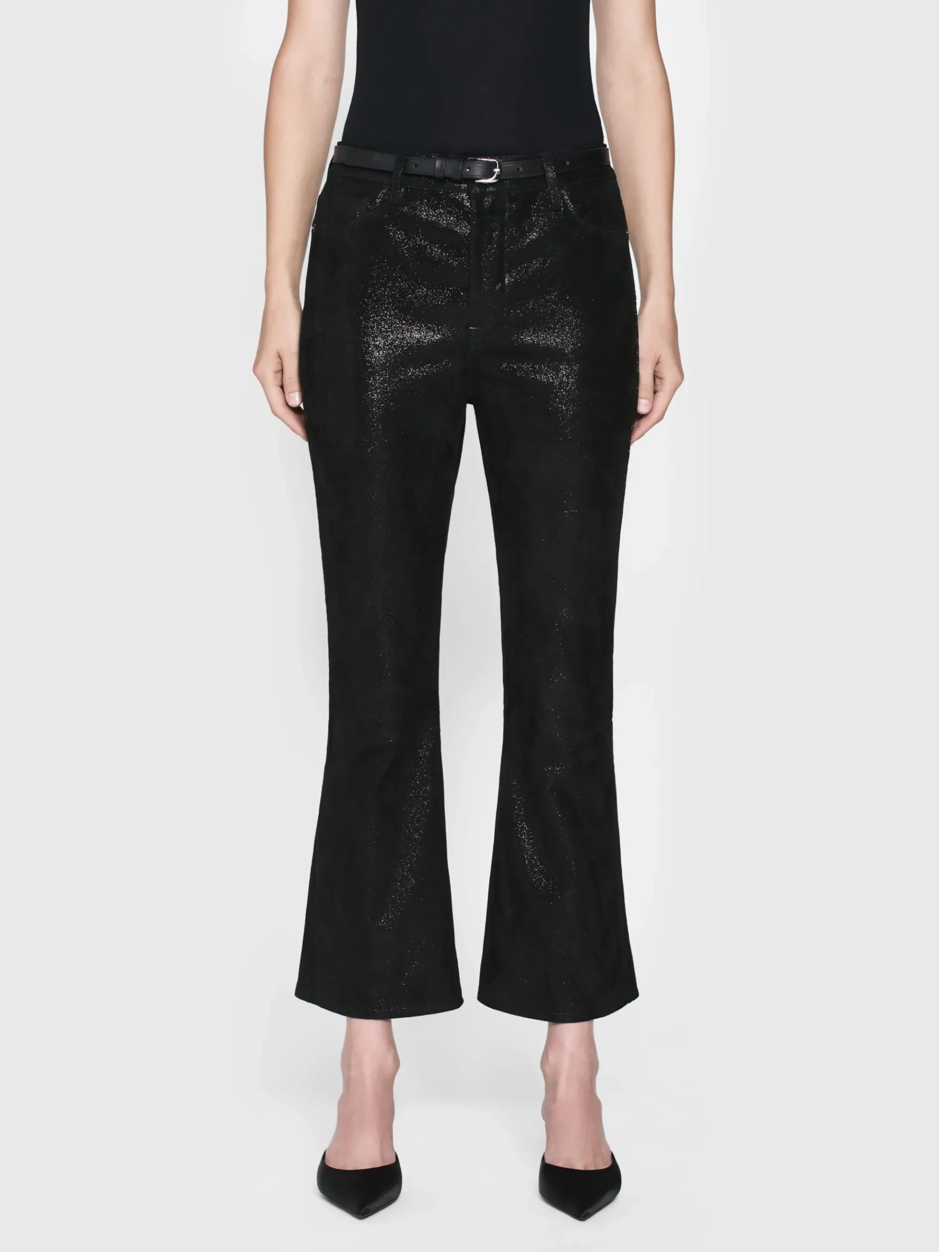 The fit that started the cropped mini boot trend, now in forever-chic black leather. The high-rise waist and cropped mini boot hem create a balanced silhouette that flatters all body types. Crafted from sparkly, stretchy suede, this fit is as comfortable as your favorite jeans, in a luxe and versatile hue.