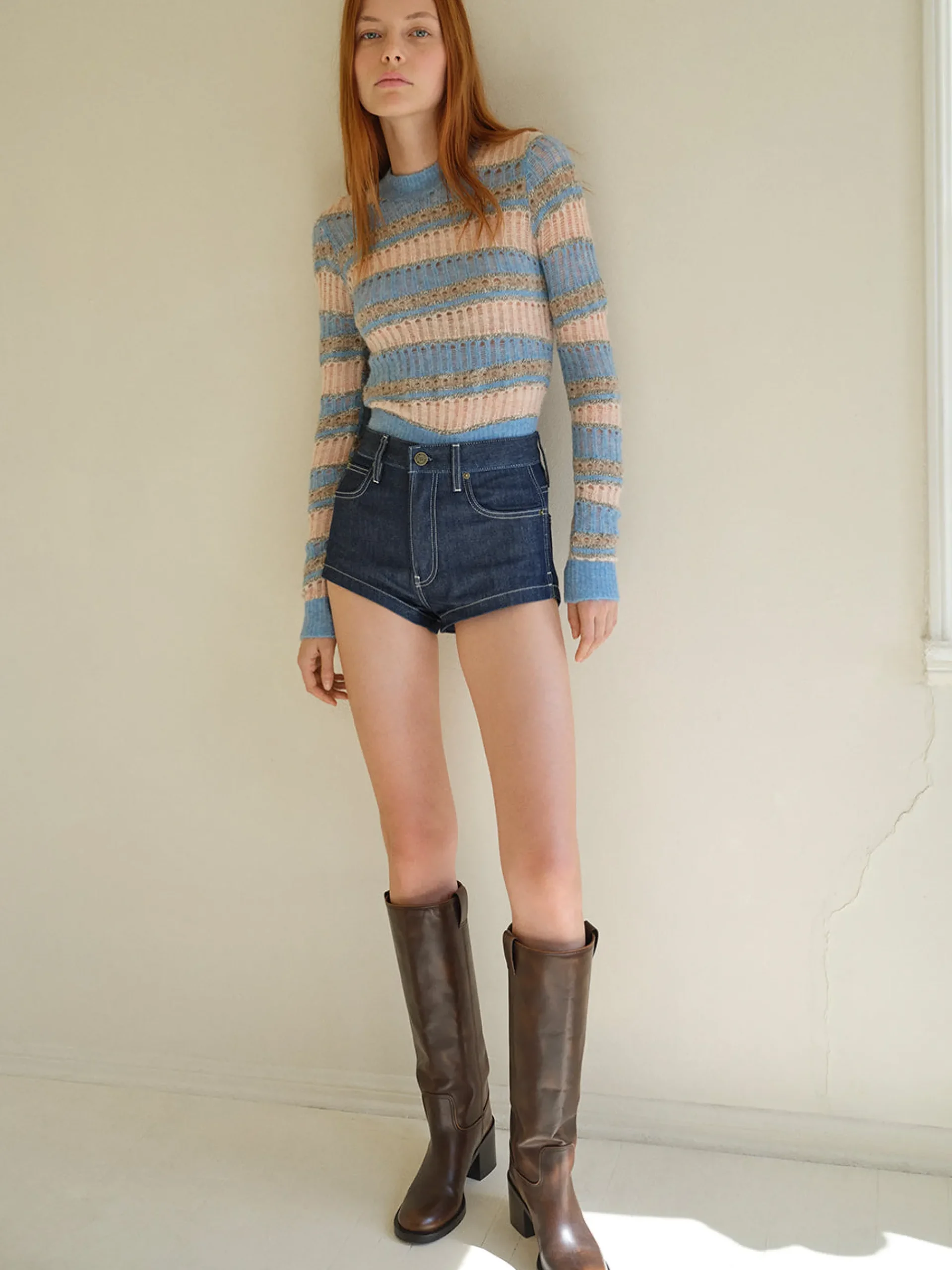 Take advantage of rising temperatures in these mini shorts that nod to beach boardwalk styles of decades past. With a flattering high rise and super short 2″ inseam, this rigid denim pair will look especially chic with fitted, tucked-in tops.